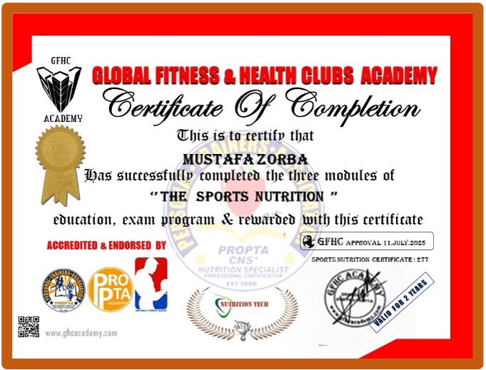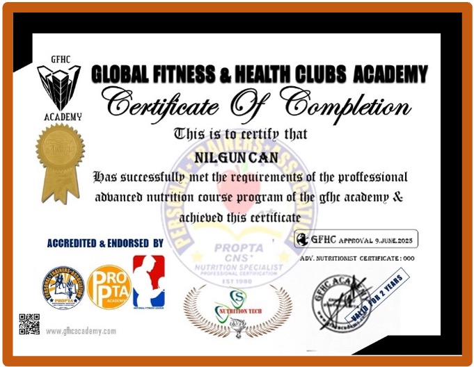 Faculty of Nutrition eğitimlerinin tamamı 2026 yılında PROPTA dan gelen yeni kaynaklar ışığında güncellenmiştir. GFHC ACADEMY FACULTY OF NUTRITION eğitimlerinin tümü PROPTA ya akreditedir. Bu fakültenin tüm belgeleri uluslararası PROPTA enstitüsü ve denkliği altındadır. Bu fakülte programının sıra dışı eğitimi ‘’SUPPLEMENTIST’’ eğitimidir. GFHC ACADEMY & PROPTA kuruluşları SUPPLEMENTIST eğitiminin tüm isim haklarının global olarak sahibidir. SUPPLEMENTIST bir mesleki unvan olup , SUPPLEMENTIST olan kişi her bir sporcu gıdasının içindeki ergojenik maddeyi iyi tanıyan ve her bir maddenin kg başına mg hesabını yapabilen kişidir.